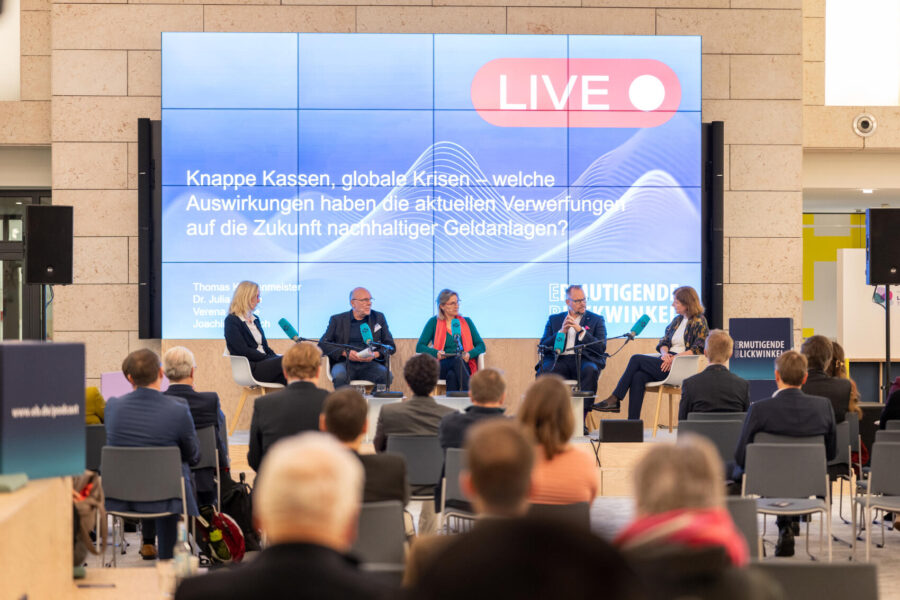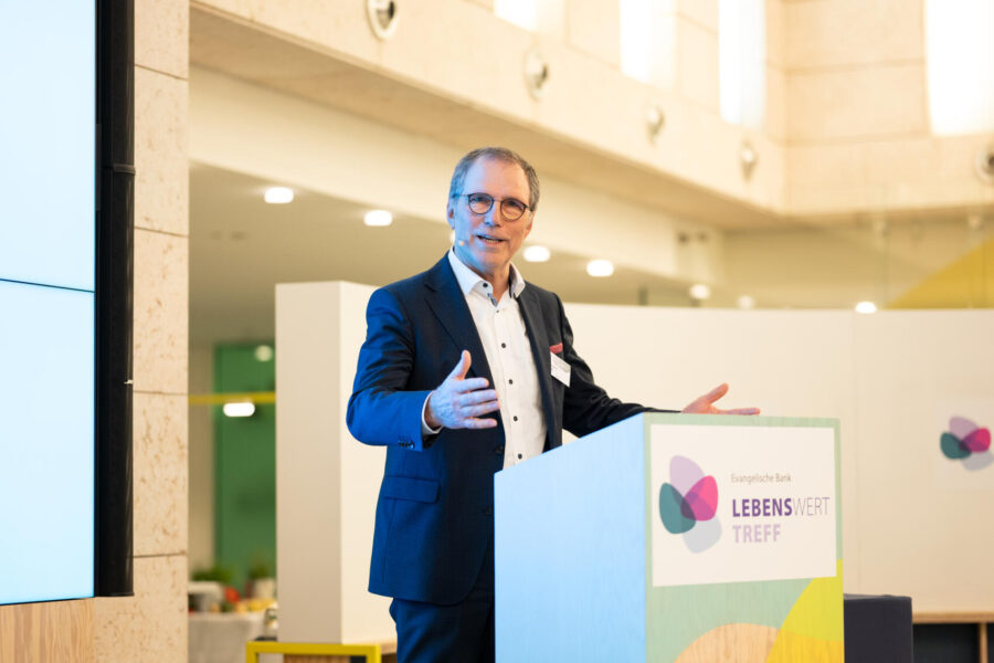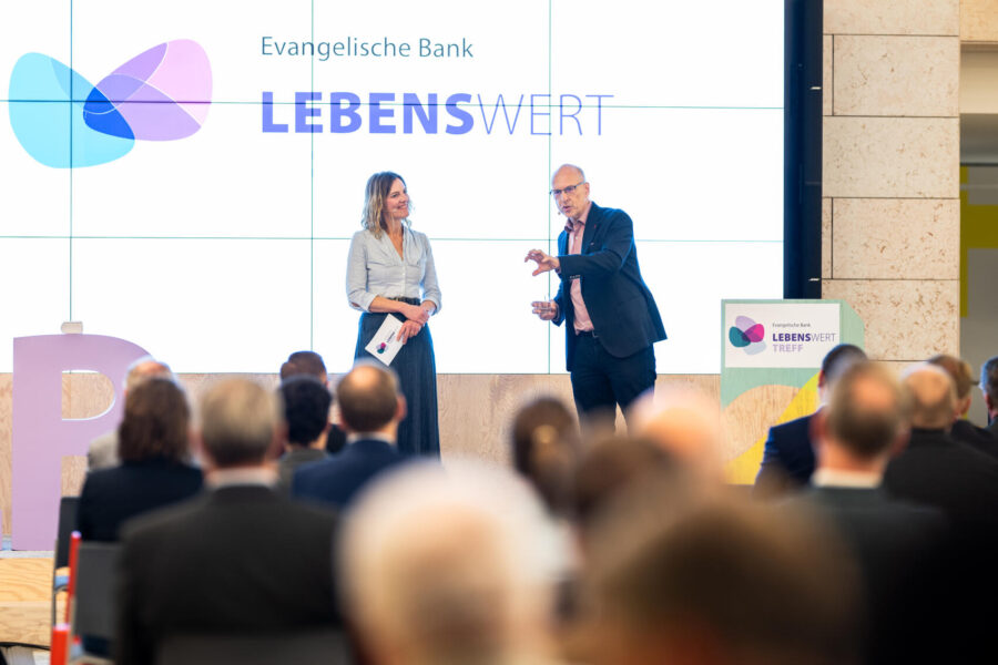 Unser virtueller LebensWert-Dialog wird ergänzt durch den LebensWert-Treff, bei dem Entscheider:innen und Führungskräfte und/oder institutionelle Anleger:innen aus Kirche, Gesundheits- und Sozialwirtschaft mit Expert:innen aus Politik, Wirtschaft und Wissenschaft zusammenkommen. Kernanliegen dieser Dialogplattform ist es, verschiedene Aspekte nachhaltigen Wirtschaftens gemeinsam mit unseren Kund:innen zu erörtern und zu diskutieren.